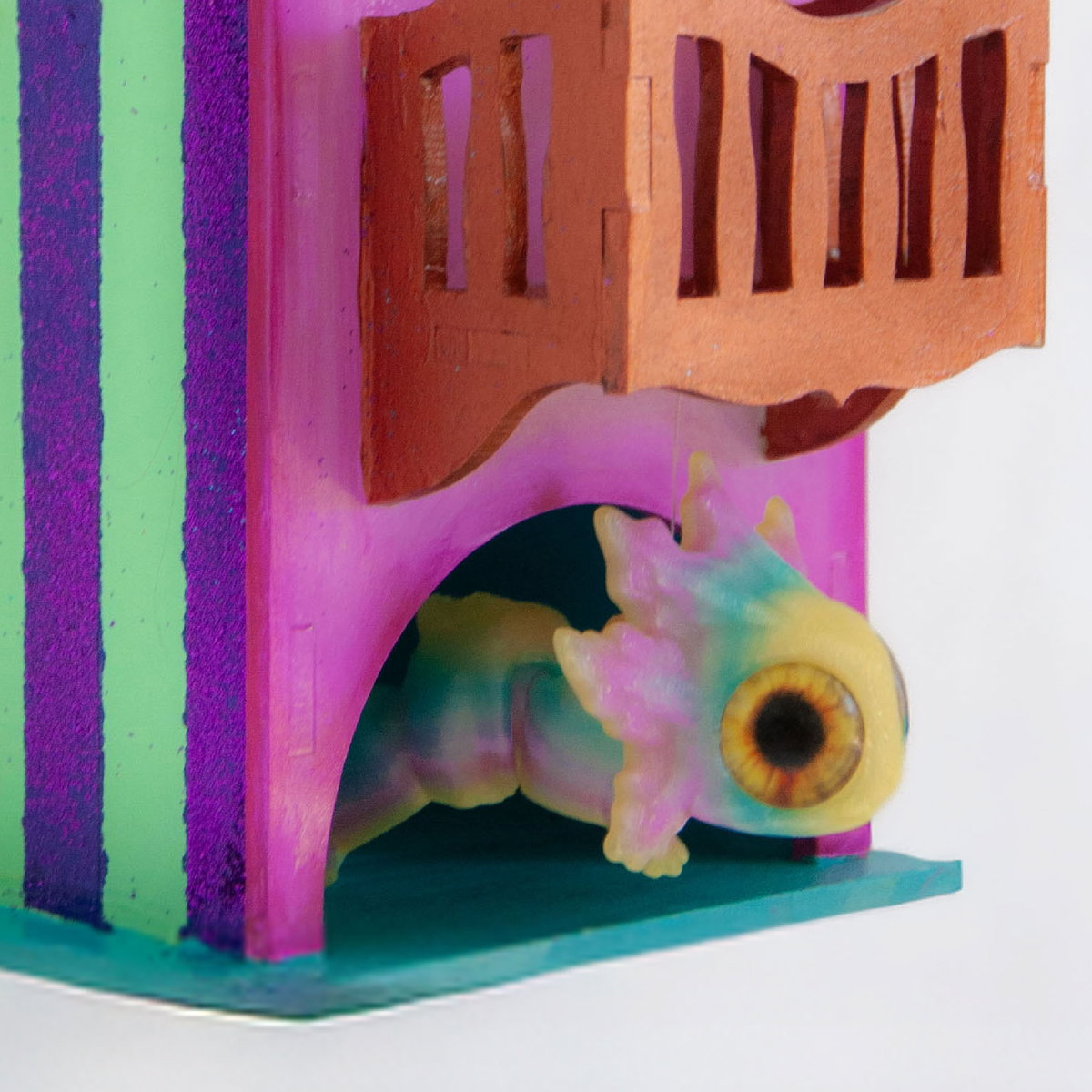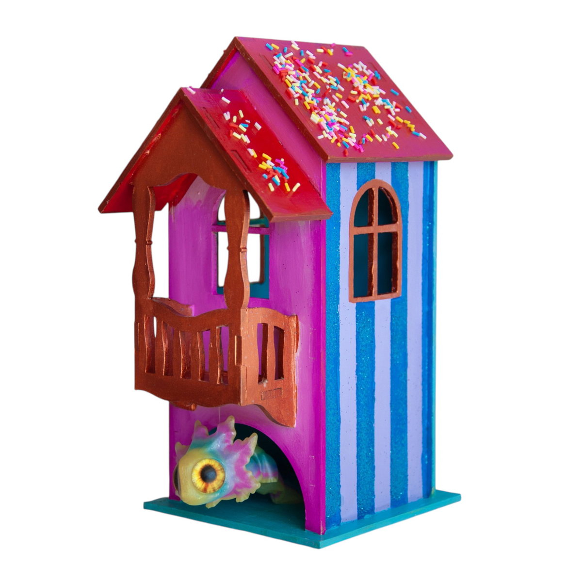 Pieza tridimensional intervenida, técnica mixta.Pieza única. 2026.21,5 x 10 x 10 cm.